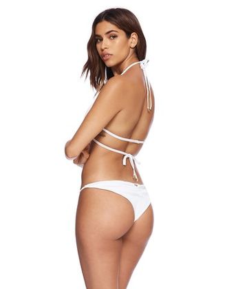 Плавки Lexi Tango с декором в виде колец идеалены. Модель украшена простой и в то же время шикарной фурнитурой. Имеет золотую фурнитуру, покрытую порошковой краской, которая не нагревается на солнце, а также фирменную сборку сзади. Оттенок с эффектом метала блестит на солнце. На модели размер S.